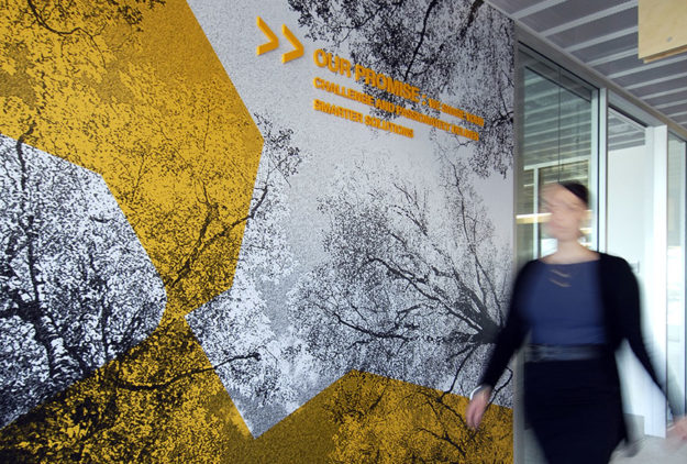 Coffey Projects We were responsible for the interior graphics, signage and wayfinding throughout the business park. / Signage + Wayfinding / Interior Graphics Client: Woodhead / Coffey Date: 2014